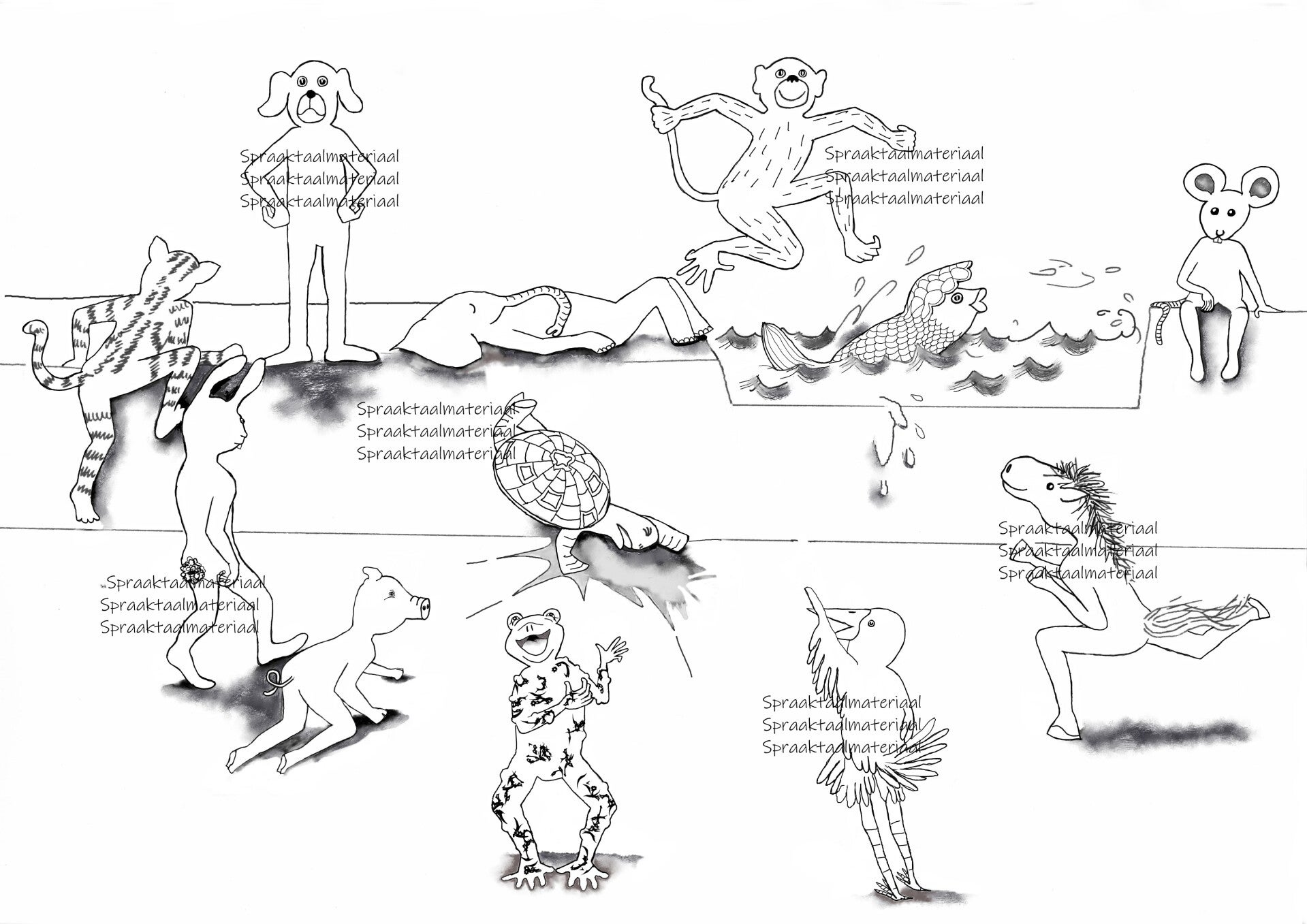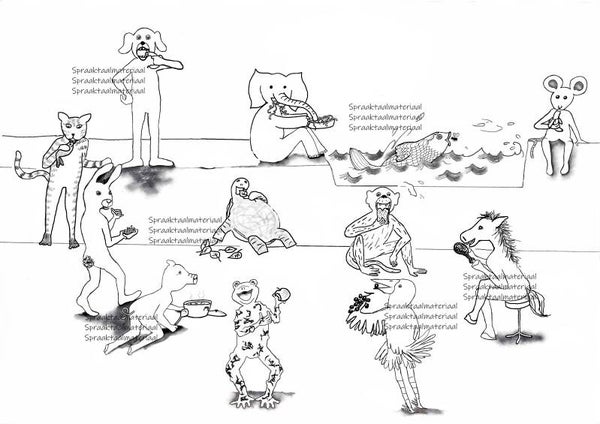 Met deze 7 bladen kun je korte zinnen oefenen die je steeds wat langer kan maken. Bijvoorbeeld: 'muis eet','de muis eet een banaan'. Ook nodigen de afbeeldingen uit om vragen over te stellen en het kind te laten oefenen met vragen stellen of gewoon om een gesprekje over te voeren en taal-denken te stimuleren.